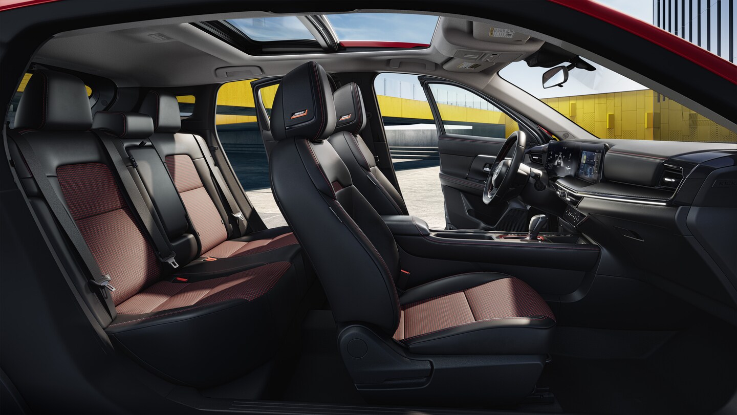 Standard NissanConnect features Siri Eyes Free and hands-free texting assistance. In the S trim, audio is delivered via four speakers, while SR and SV models upgrade to six. Audiophiles can opt for the Bose 10-speaker system, which includes headrest speakers for an immersive sound experience. Additionally, the SR trim offers Wi-Fi hotspot capability, turning the Kicks into a mobile office or entertainment hub for up to seven devices.